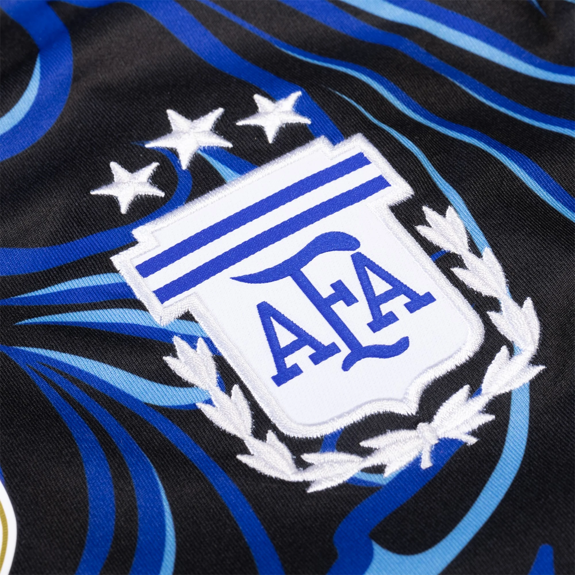 On Argentina’s 26/27 away jersey, adidas look to capture that joy – encapsulating the passion of the Argentinian people and cultural motifs of the nation and its history. Supported by a dark base, the jersey weaves Baroque and Rococo ornamentation all around using swirling, S-shaped curves to reflect the emotive passion of celebration. On the back neck, a bespoke sign-off appears, reading “Argentina” in Fileteado lettering layered on top of the Argentinian sun. Will there be cause to celebrate for Argentina once again this summer? There just might be…