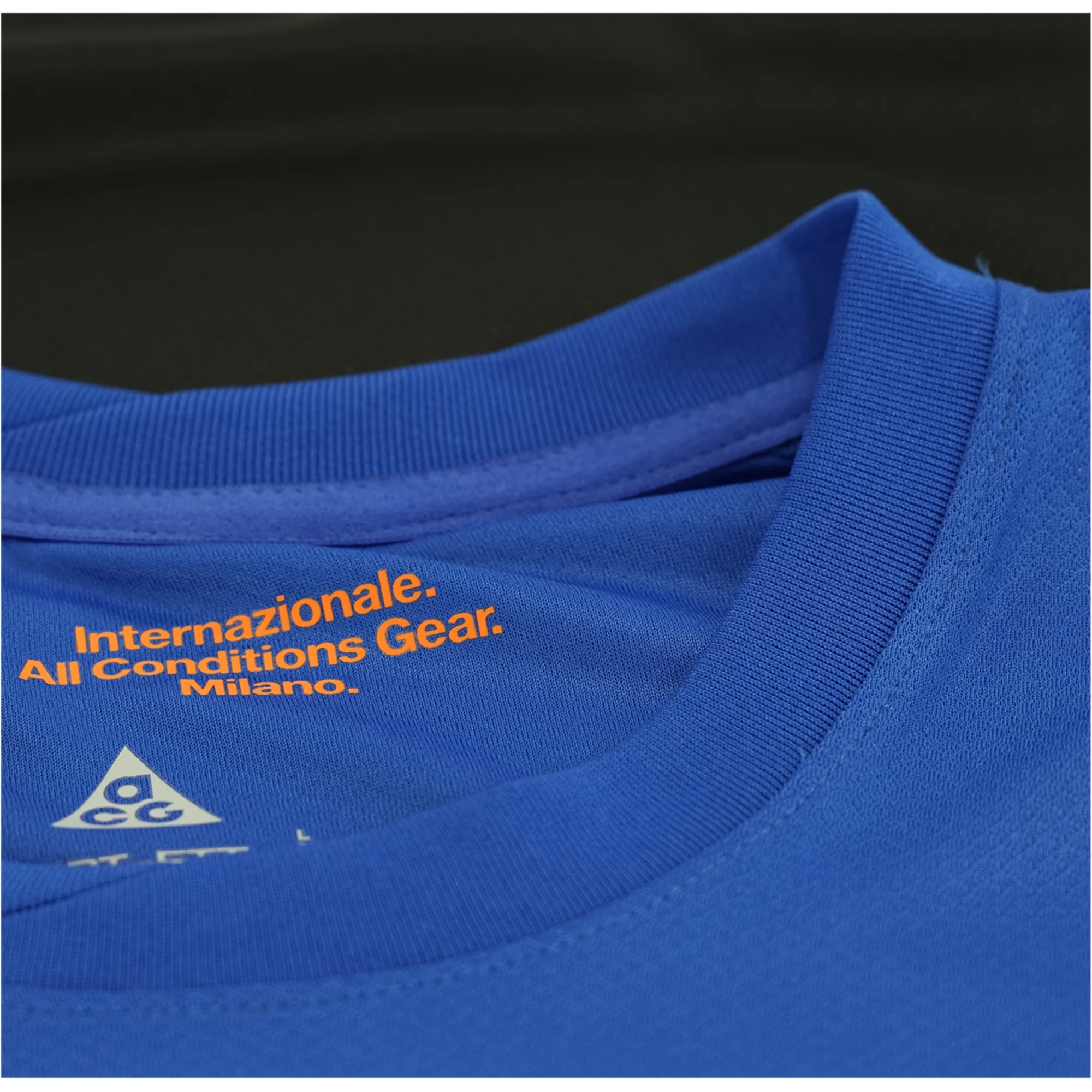In ANY weather. The 2026 Inter Milan Fourth Jersey is a celebration of those that get it done even in the harshest, the coldest, the most unforgiving of environments. The ultra-unique and stylistic color block design of this Inter Milan Fourth jersey is meant to welcome the participants of the 2026 Winter Olympics, while also showing off Nike’s cold weather tech. You’ll notice the Nike swoosh is missing from the chest – that’s because It’s been replaced by the brand’s All Conditions Gear logo. The logo – known as ACG – celebrates Nike’s ability to craft fabric tech that transcends weather limitations. Used at the San Siro in freezing temps, used in the Olympics at freezing temps. Wear this Inter Milan Fourth jersey anytime, anywhere.
