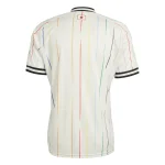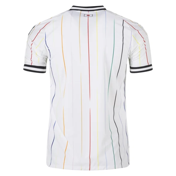 The Japan 26/27 away jersey is designed around the concept “Colors Beyond the Horizon.” This theme represents the unity and bond of the nation, illustrated through a stripe graphic featuring 12 different colors.