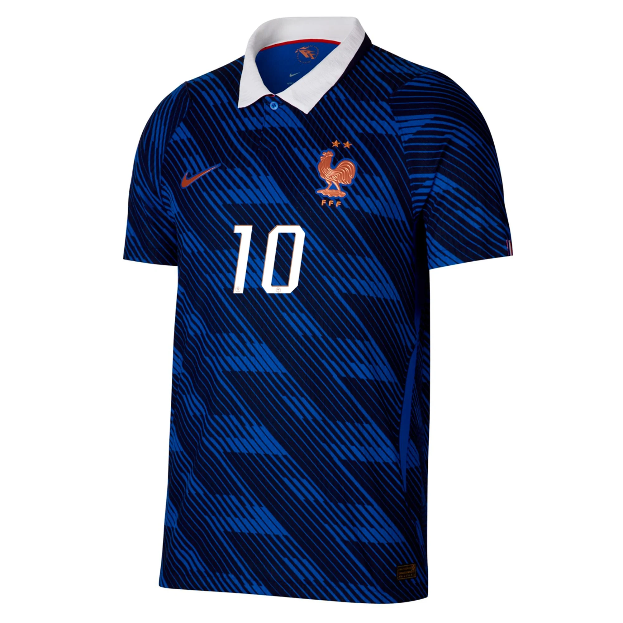 This is pure French footballing class. This is a kit that breathes football, instills passion and emanates French soccer. A distilled French Football Federation pattern runs all over the jersey’s blue base, capped off up top by a folded white collar and golden metallic detailing. Inside, a stylized “FFF” reads on the neck in gold, giving a zoomed-out look at the kit’s all-over graphic. No one will look classier for summer ’26, and hardly anyone’s got a deeper squad than France. Suit up in this France 26/27 home jersey / kit by nike and support your nation at the biggest tournament on Earth.