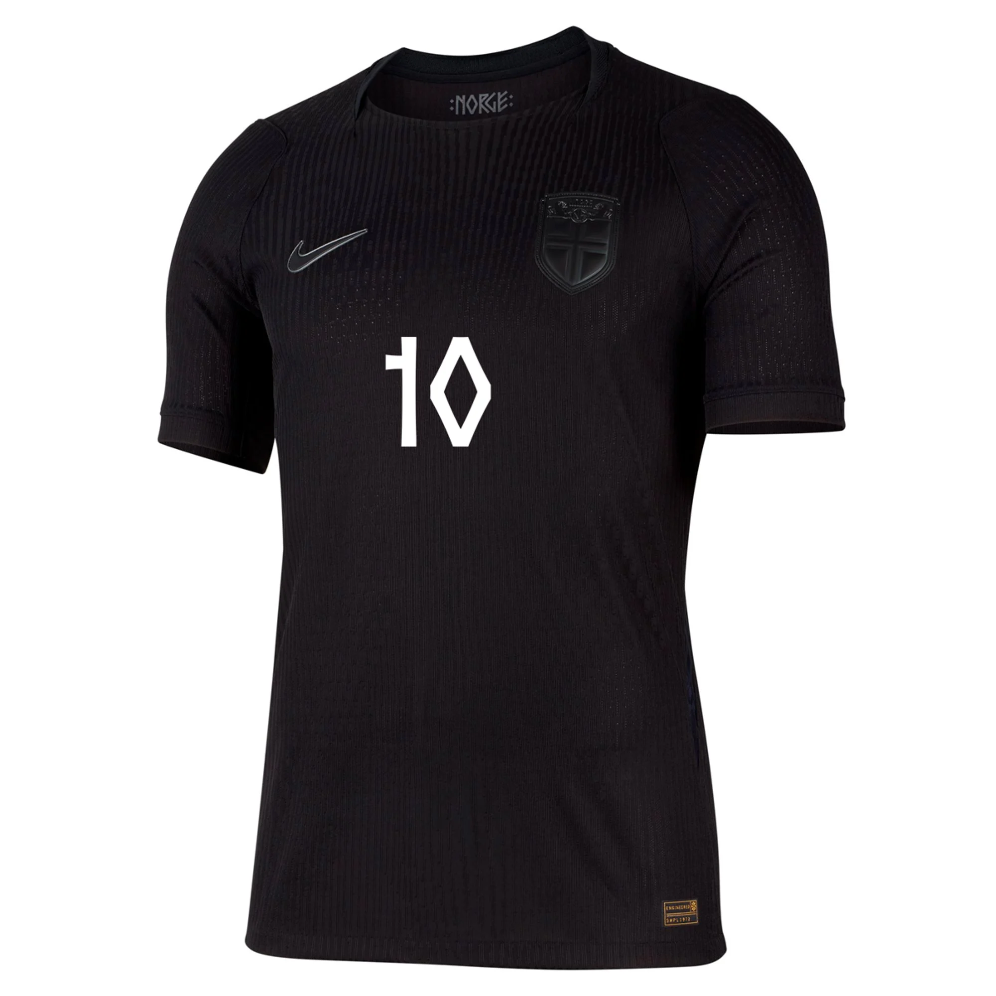This is the Viking kit. A dark, foreboding and intimidating jersey to be worn by Scandinavia’s finest warriors. With tonal crest applications, there are few blackout jerseys that go completely dark, as does Norway’s 26/27 away shirt by Nike. Strike fear into your opponents and get dressed in a kit that’s equally ready for the field and for casual wear. Represent Norway in 2026.