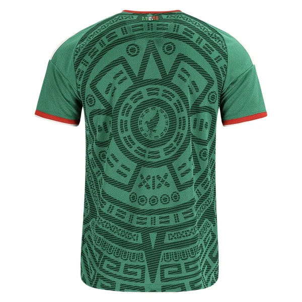 Adidas and Mexico continue their Quetzacoatl story to tremendous effect on the 22/23 away shirt for El Tri. The serpent-like god of the sun, wind and learning returns, but this time it’s not just his feathery headdress that makes an appearance on the jersey – it’s his whole body. Chopped, distorted and mismatched, the front-ok-jersey print breathes a vibrant bright red, almost pink tone. Just like on the home jersey, adidas achieves iconic simplicity as they recode the MNT legacy and provide players and fans alike with an ancient spiritual strength.
