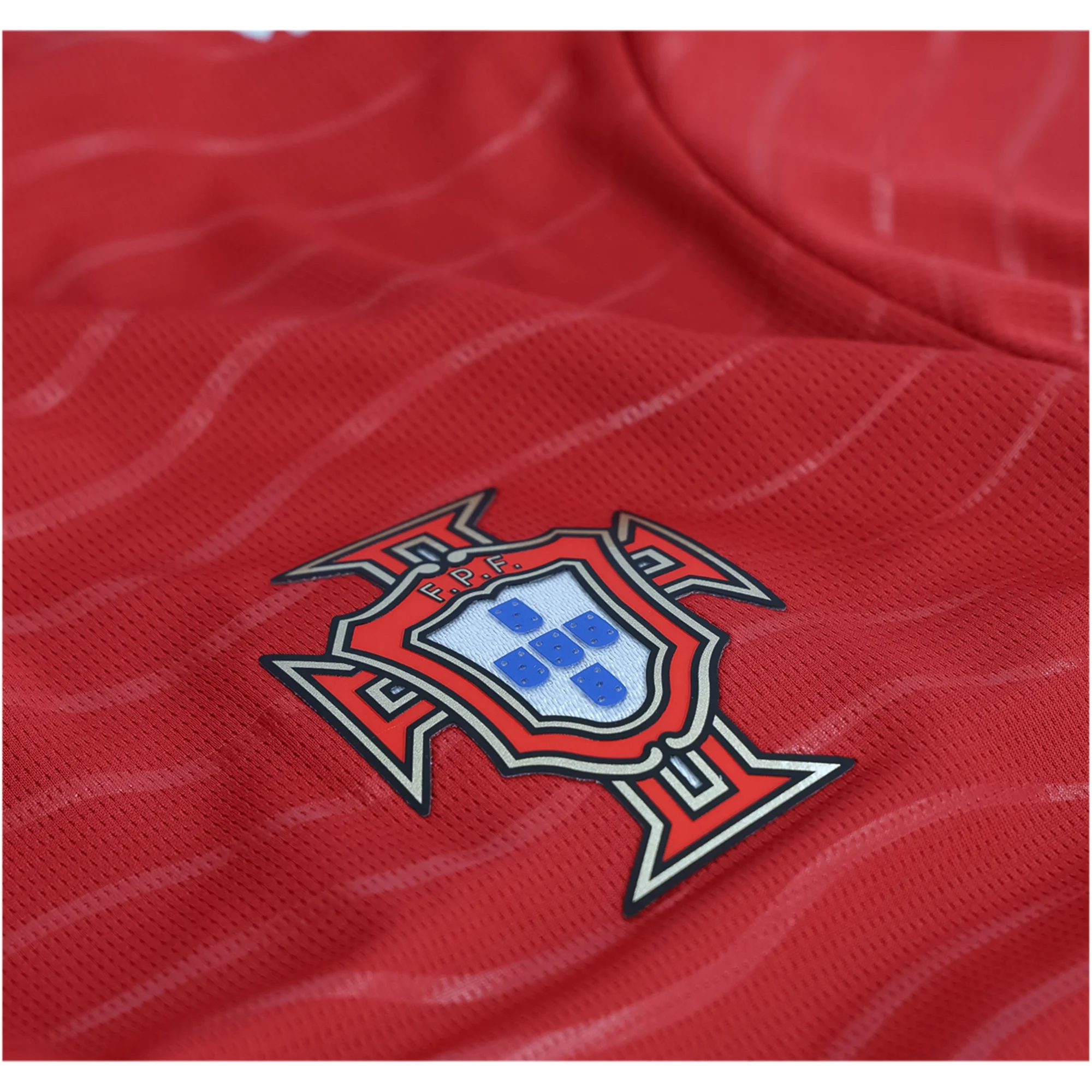 Portugal’s 26/27 Home Jersey cruises onto the world stage in a familiar setup – red base and green accents, pulling from the country’s flag and national colors.