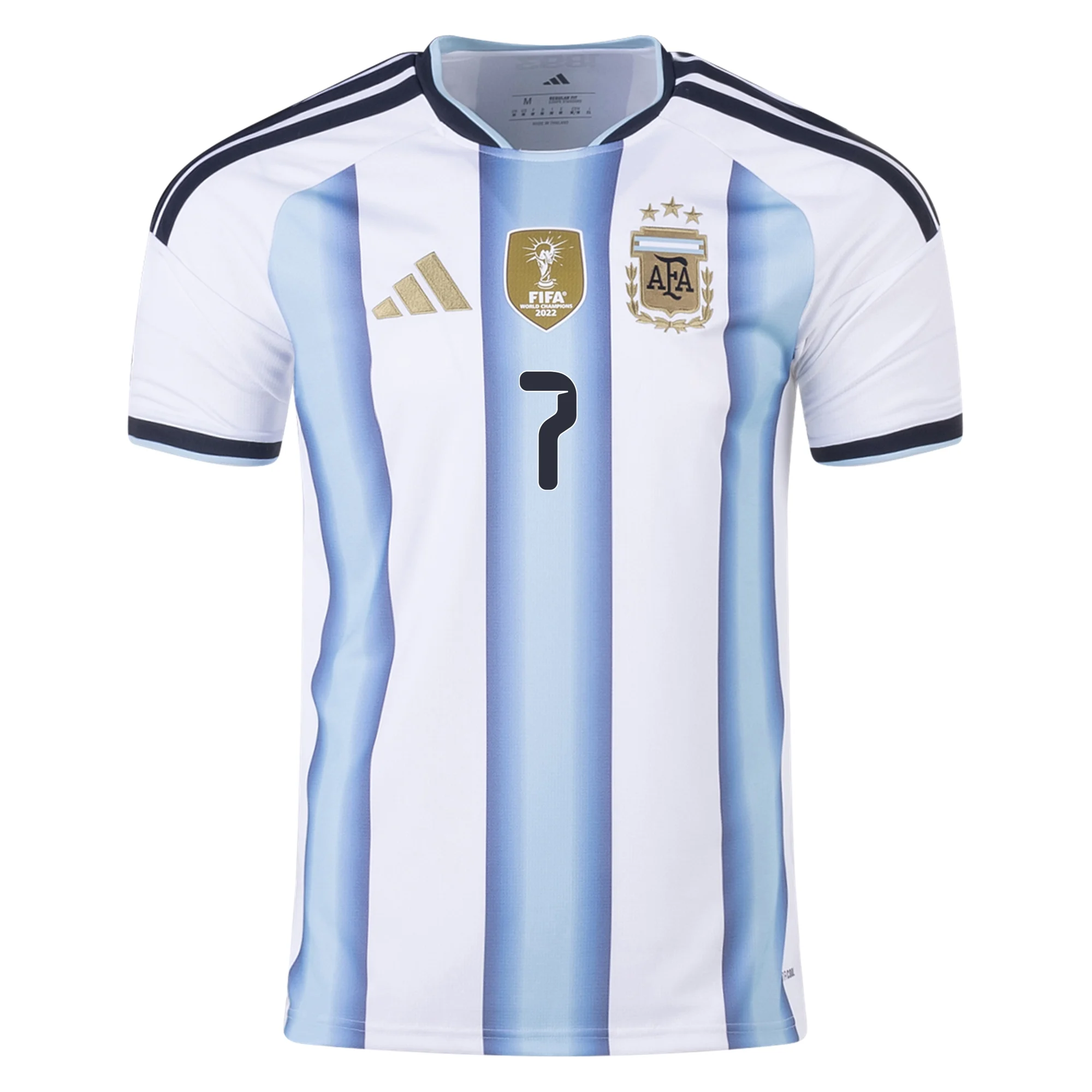 Why is all of this important? Because all three winning shades of Argentina Sky Blue combine, blend and roll into one cohesive unit here on the 26/27 Argentina Home Jersey. The colors of previous winning kits run up and down the traditional stripes in a gradient pattern that is a celebration of triumph at its very core. With this home top, adidas set out to create a kit to celebrate champions, and what better way to do it than to celebrate all the champions that paved the way to this moment in one fell swoop?
