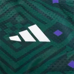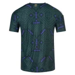 The Saudi Arabian 26/27 Home Jersey may fly under the radar, but rest assured it is one of the most bespoke and unique kits on the market this season. The graphic design you see in an all-over print echoes the Saudi tradition of vibrant doorways – using geometric and cultural patterns to enliven the kit in the same way Saudi natives use them to enliven their homes. The color palette here takes from the Saudi Arabian flag, but also from another cultural touchpoint of Saudi Arabia – lavender fields. Each spring following winter rains, some of the largest most beautiful fields of lavender in the world erupt in purple to the delight of travelers and locals alike. That delight is mirrored on the kit with the purple coloration found in its design. Finally, crossed blades and a palm tree from the nation’s national emblem are recreated in a back neck signoff.